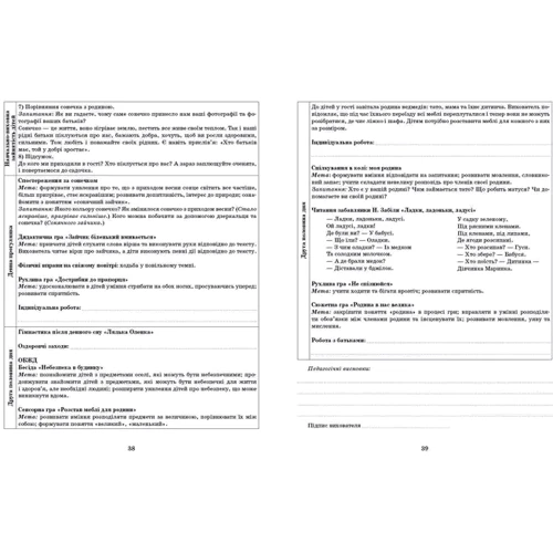 Грамотно складений план — це надійний путівник у реалізації поставлених освітніх завдань. Планування навчально-виховного процесу організованого характеру робить діяльність вихователя цілеспрямованою і результативною, визначає конкретні завдання, зміст, форми і методи роботи з дітьми. Принципами календарного планування є: послідовність у викладенні матеріалу, чіткість поставлених завдань, відповідність форм роботи віковим та індивідуальним особливостям дітей, різноманітність видів діяльності тощо.