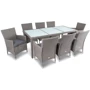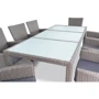 У набір меблів Di Volio VERONA входять елегантні крісла універсального кольору, великий стіл зі скляною стільницею, м'які подушки, елементи кріплення і спеціальний захисний чохол.
