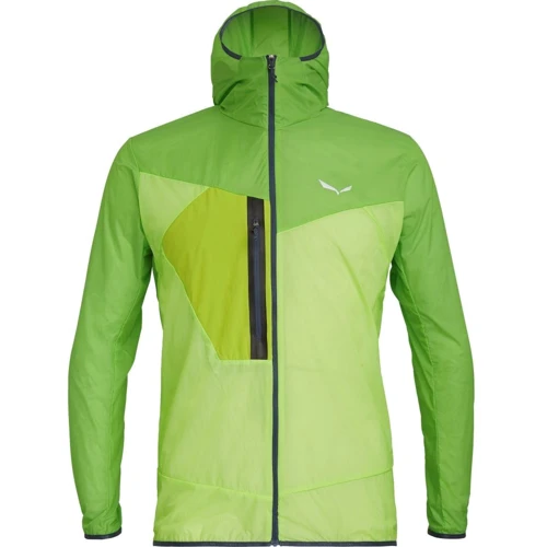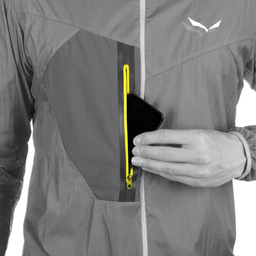 Salewa Pedroc Wind JKT Men's - це водовідштовхувальна і вітрозахисний чоловіча штормова куртка. Виготовлена з нейлону Ripstop з обробкою DWR (міцний водовідштовхувальний матеріал). Ця тканина спроектована без шкоди для природи (без речовин PFS) і сертифікована компанією Bluesign, яка підтримує екологічно чисте виробництво. Куртка захищає від пронизливого вітру і дрібного дощу. Вона дуже легка (всього 100 г) і стійка до пошкоджень. Завдяки ергономічним рукавах і плечах - ідеально сідає по фігурі. Капюшон штормівки з еластичним краєм - щільно повторює форму голови (надійний захист від вітру). Є нагрудний кишеньку для дрібниць. На куртці є деталі, які світяться в темряві. Це додаткова безпека під час туманних, нічних або похмурих сходжень в горах. У комплекті компресійний чохол (істотна економія простору в рюкзаку). Така куртка відмінно підійде для базового або єдиного шару під час швидкісних гірських походів або тренувань на відкритому повітрі.