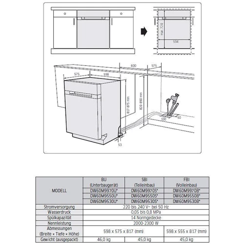 Функції | режим половинного завантаження, таймер, захист від дітей, дисплей, Aqua Stop, регулювання висоти верхньої корзини |