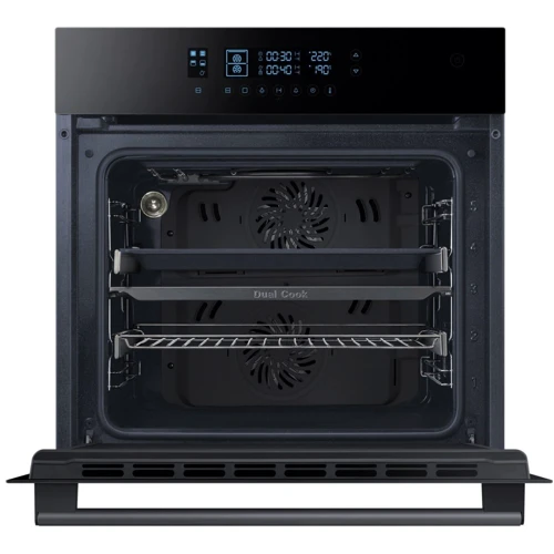 # Конвекція гарантує рівномірне нагрівання Духовка Samsung NV68R5540CB/WT для рівномірного приготування використовує конвективні вентилятори. Конструкція камери вбудовуваної духової шафи передбачає наявність двох виразно розташованих спеціальних вентиляторів. Вони відповідають за правильне переміщення повітряних мас усередині камери за допомогою конвекції. Такий вплив призводить до ідеального ефективного нагрівання обох зон духової шафи. Вам не потрібно буде перевертати страву під час приготування, хвилюючись про рівномірність приготування.