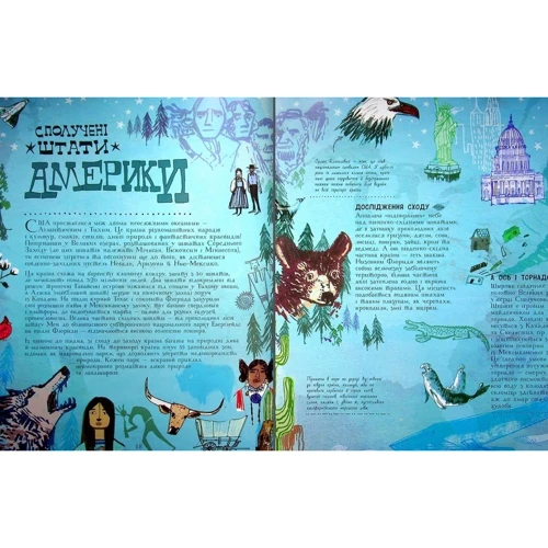Неймовірні ілюстрації та дивовижні факти на сторінках цього атласу дозволять дослідити нашу планету континент за континентом, заглиблюючись у світ природи, культуру й історію різних народів. Мандрівка розпочнеться за Північним колом, згодом ви перетнете всі материки, відвідаєте найвідоміші міста й історичні пам’ятки — від Сіднейського оперного театру і до стародавнього міста Тікаль, — відкриєте стародавні артефакти, поласуєте національними стравами і познайомитеся з диким життям джунглів, пустель та саван.