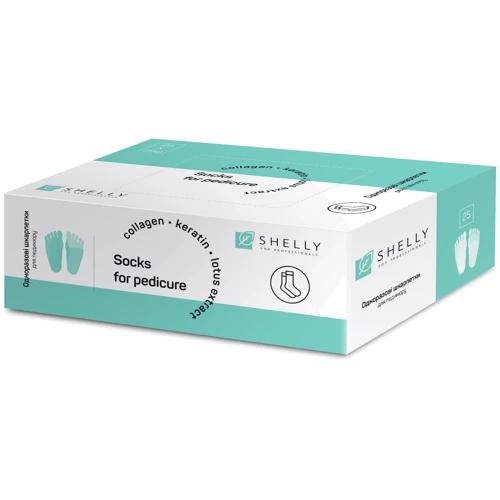 Одноразові шкарпетки для педикюру Shelly дозволяють зробити класичний або європейський педикюр без використання води і педикюру ванночки. Шкарпетки ідеально готують нігті для полірування і нанесення покриття. Дозволяють виконувати педикюр швидко, гігієнічно і легко. В результаті, кутикула легко обробляється апельсиновою паличкою, нігті стають білішими і міцніше, шкіра м'якою і шовковистою.