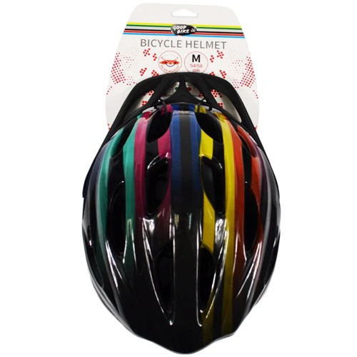 Шолом дорослий захисний виготовлений за технологією InMold з надійним захистом та знімним козирком. Особливість конструкції полягає у заниженій потиличній частині. Ремінці, що забезпечують кріплення застібкою-фастексом на підборідді, дають можливість регулювання в широкому діапазоні з регулюванням розміру за обсягом. Має 11 отворів для вентиляції, що допомагають тримати комфортну температуру під шоломом. Призначений для захисту голови від ударів під час падіння та ДТП. Такі шоломи легкі та забезпечують гарний захист для спортсменів та любителів велосипедної їзди. Антибактеріальні прокладки добре вбирають вологу та легко знімаються для прання.