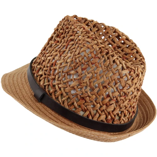 Плетений капелюх з натуральної пеньки коричневого кольору.