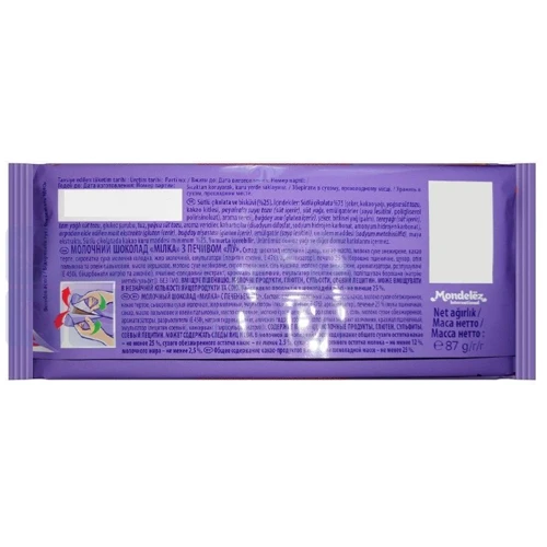 Шоколад Milka LU виробляється з високоякісних інгредієнтів, які проходять ретельне дослідження в лабораторних умовах. У представленому продукті міститься не менше 25% какао. Процес створення шоколаду контролюється на кожному етапі. Калорійність продукту складає 515 кілокалорій на 100 грам.