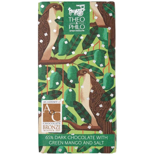 какао-боби, цукор, какао-масло, сушене зелене манго, морська сіль.