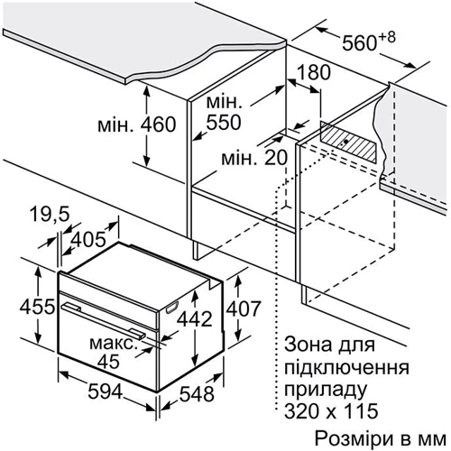 Додатково | Розміри для вбудовування (ВхШхГ) 450x560x550 мм |
