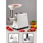 М'ясорубка Sokany SK-099 може переробляти до 2 кг м'яса за хвилину. Також вона має 4 насадки для подрібнення м'яса, ковбас та кеббе. М'ясорубка обладнана зручною системою керування та легко чиститься. Використання мідного двигуна надає м'ясорубці додаткову надійність та ефективність, забезпечуючи стабільну роботу протягом тривалого часу.