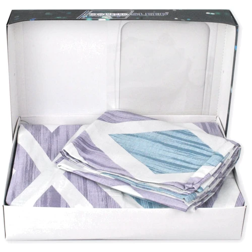 Натуральна білизна з 100% бавовни в плетінні бязь з красивим геометричним принтом в крафтовій упаковці. Білизна виготовлена з білоруської бязі, відмінної якості, не викликає алергічних реакцій та подразнень, ідеально підходить і для дітей. Міцна і стійка до зносу тканина, яка легко відпирається від плям і забруднень, після прання виглядає новою і свіжою.