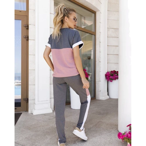 Спортивний костюм виконаний з двониткового трикотажу з контрастними вставками.