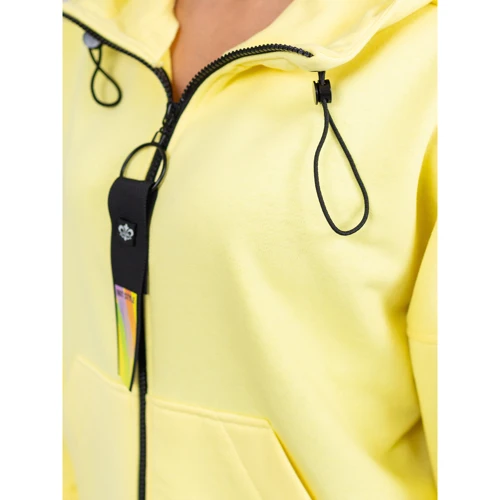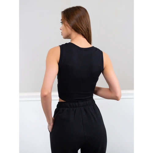 Спортивний костюм-трійка складається з толстовки, кроп-топа і брюк-джоггерів. Толстовка вільного крою, внизу на кулісці. Злегка подовжену спинку за бажанням можна підвернути. Капюшон доповнений сіткою, регулюється лаштунками на люверсах. На спинці нашивка. На бортах толстовки кишеня по типу "кенгуру". Застібається на блискавку, оформлену репсовими стрічками і декоративним елементом з логотипом бренду. Легкий і еластичний кроп-топ. Брюки-джоггери на манжетах, модель високої посадки. Еластичний перестроченний пояс на зав'язках. Накладна кишеня на штанині. Є прорізні кишені з боків, всередині кишень підкладка-сітка.