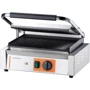 Гриль контактний Stalgast 742038 ідеально підходить для підсмаження шаурми, приготування стейків та інших м'ясних виробів. Гриль надає їм апетитного і привабливого вигляду за рахунок підсмажених смужок, у той же час на приготування страв на 20-30% менше, ніж на звичайних грилях та жаркових поверхнях, що є пріоритетним у виборі цього гриля. Притискний гриль за рахунок потужних нагрівальних елементів зверху та знизу за пару-трійку хвилин підсмажить рум. стейки з м'яса та риби, і тому він незамінний у невеликих кафе та ресторанах, де площа кухні не дозволяє встановити професійні габаритні плити, але треба швидко обслужити гостей. Плавне регулювання притиску верхньої поверхні забезпечує приготування продуктів будь-якої товщини. На лицьовій панелі знаходиться терморегулятор, що дозволяє плавно вибирати рівень нагрівання від +50 до +300 °С. Є резервуар для збирання зайвого жиру, який зручно витягується для санітарної обробки.