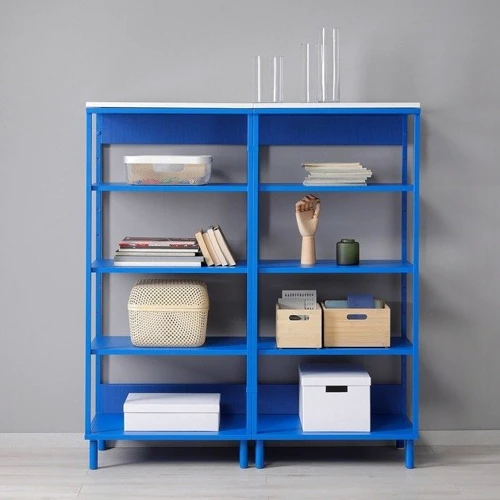 Синій колір цієї відкритої полиці PLATSA надасть елегантності будь-якому приміщенню. Він доповнює різні стилі декору та привносить освіжаючі кольори у ваш простір.