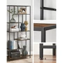 Міцна сталева конструкція забезпечує стелажу стабільність та довговічність. Сталь, використана у його виготовленні, не тільки надає міцності, а й підкреслює стиль Loft, створюючи контрастність із теплим відтінком деревини. Його сучасна конструкція не тільки стильна, а й дуже стійка, що забезпечує довговічність та надійність використання.