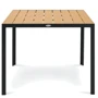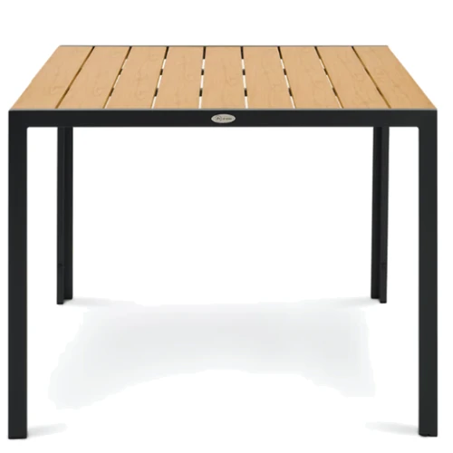Квадратна стільниця столу Pesaro виготовлена із сучасного поліуретанового матеріалу, що поєднує в собі природний зовнішній вигляд деревини та міцність пластику. Завдяки цьому садовий стіл стійкий до погодних умов, не вицвітає на сонці та не псується під дощем. Стільницю з полівуду також легко підтримувати в чистоті, а випадково пролиті напої не залишають на ній плям.