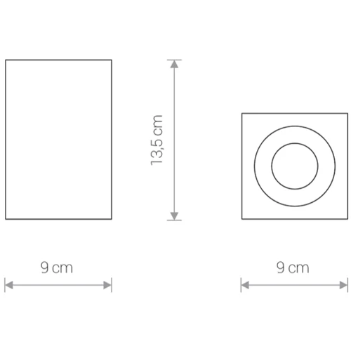 Висота становить 135 мм, довжина – 90 мм, ширина – 90 мм.