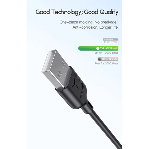 Кабель T-PHOX Fast T-L829 призначений для синхронізації і зарядки смартфонів, планшетних ПК і інших пристроїв з роз'ємом Lightning.