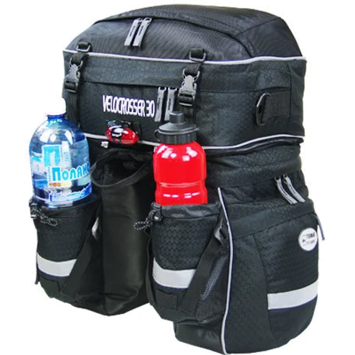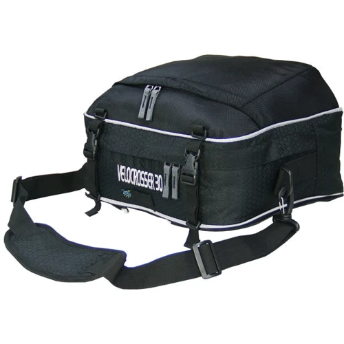 Завдяки гнучкій конструкції кріплення за допомогою застібок FASTEX підходить для задніх багажників практично будь-якого розміру. Оснащений непромокалючим чохлом від дощу, світловідбивачами ззаду і з боків.