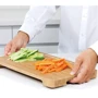 Масивна обробна дошка з декількох шарів спеціального натурального бамбука чудово підходить для нарізування, оброблення та відбивання продуктів. Виймання на нижній частині дошки дозволяє вставити тарілку або піднос, щоб легко перекласти на них нарізані продукти, обробна дошка нахилена до ринви для стікання рідини. Зручні ручки для безпечного поводження, протиковзна обробка. Мийте під проточною водою, не мийте в посудомийній машині.