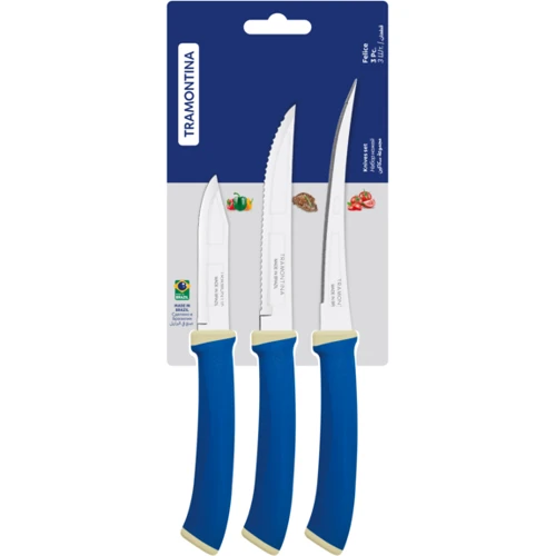 Ножі серії FELICE – ідеальні компаньйони у щоденних кухонних справах. Високоякісна нержавіюча сталь леза, надійні та ергономічні поліпропіленові ручки, що витримують високі температури – ці властивості забезпечують довговічність використання, поєднану із винятковою силою розрізання харчових продуктів. Ручки представлені у класичному чорному та синьому кольорах. Ножі FELICE добре витримують мийку в посудомийній машині. Вони створені, щоб максимально спростити вашу кухонну рутину!