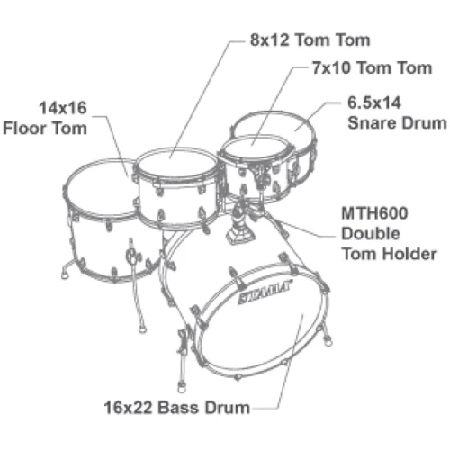 Том-том, флор-том та малий барабан: 6 шарів, 5 мм; бас-барабан: 8 шарів, 7 мм.