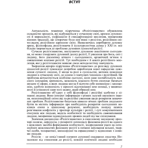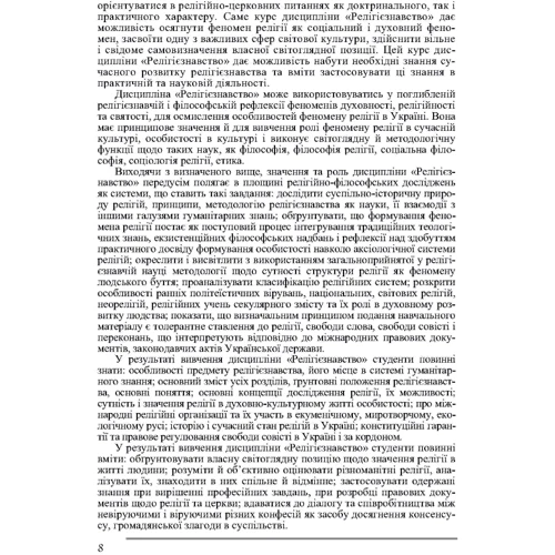 У підручнику досліджуються особливості предмету релігієзнавства, його місце в системі гуманітарного знання, ґрунтовні положення релігієзнавства, основні поняття, основні концепції дослідження релігії, їх можливості, сутність і значення релігії в духовно-культурному житті особистості.
