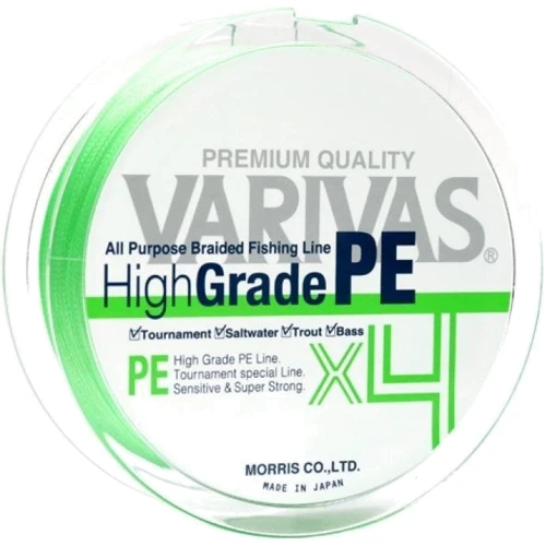 Шнур Varivas High Grade PE - універсальна модель, що підходить для всіх видів лову спінінга. Четирёхжільное плетіння з високомолекулярного поліетилену (PE) створює відмінну міцність на розрив і забезпечує низький розтягнення, яке в комплексі з високою м'якістю створюють підвищену чутливість снасті.