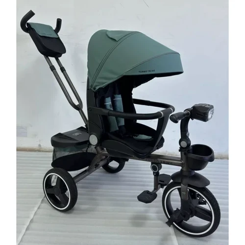 Turbo Trike MT 1003 зберігає свою унікальність з поворотним сидінням, забезпечуючи малюкові можливість насолоджуватися керуванням та розглядати навколишній світ у будь-якому напрямку. Яскрава фара попереду гарантує безпеку і веселощі під час поїздок, а кермо, що складається, полегшує зберігання велосипеда після пригод.