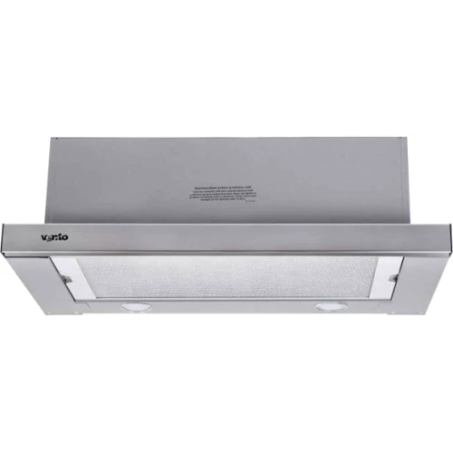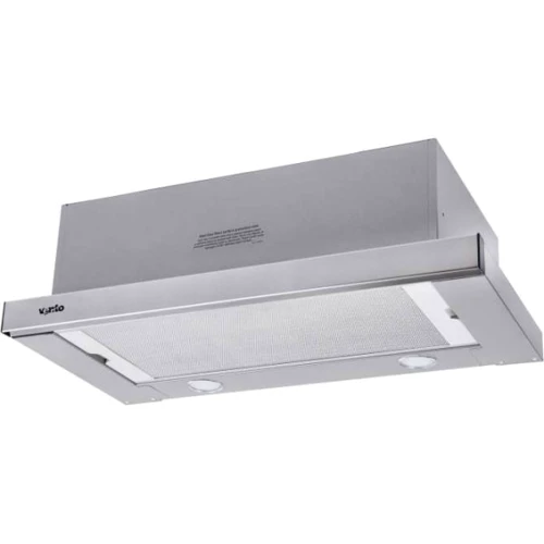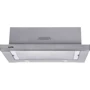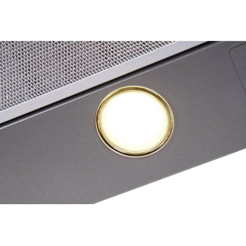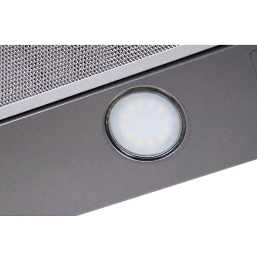 Така телескопічна кухонна витяжка стане відмінним варіантом для розміщення в приміщеннях з обмеженим простором. Вона спроектована спеціально для врізання в тумбу, ширина якої не перевищує 60 сантиметрів. Після встановлення у відкритому доступі залишається передня частина панелі, яка висувається при роботі. Управління здійснюється з використанням кнопкових перемикачів, розміщених під панеллю, які також з'являються при включенні витяжки.