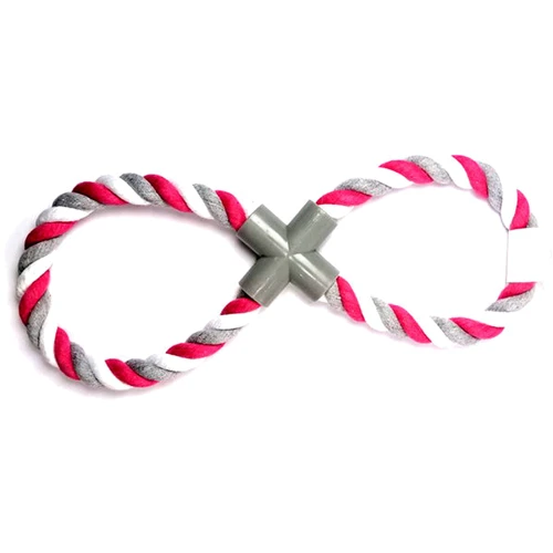 Іграшка для собак мотузкова вісімка, кольорова. Являє собою скручений канат з бавовняних ниток. Іграшка займе Вашого вихованця корисною справою, і дозволить Вам не турбуватися про цілісність домашнього майна. Практична іграшка ще і масажує ясна, запобігає появі карієсу. Допомагає навчити молоду собаку базовим командам.