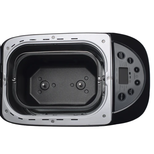Залежно від рецепту автоматично вмикається фаза витримки для підйому тесту. Алюмінієва ємність з двома тістомісами, для запікання у формі буханця, має антипригарне покриття.