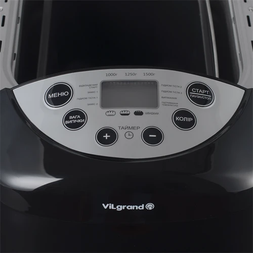 Хлібопічка потужністю 850 Вт, вихід готового продукту – 1 кг, 1,25 кг та 1,5 кг (можна вибрати).