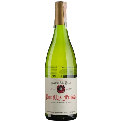 Ароматне, густе, щільне, але дуже витончене вино Domaine J.A. Ferret, Pouilly-Fuisse створюється з винограду сорту Шардоне, вирощеного на найкращих ділянках в амфітеатрі Пюї-Фюїссе, що належать Домену Ферре, купленому Луї Жадо в 2008 році. Змішані ґрунти (глина та вапняк) були тут ще за часів Юрського періоду, і сьогодні вікова земля надає винограду особливо делікатної мінеральності. 50% сусла повільно ферментується та витримується у сталевих чанах, інша частина – у дубових бариках. При цьому використовуються не нові, а бочки, що вже були у використанні від двох до п'яти разів. В результаті вино Pouilly-Fuisse набуває свіжого фруктового смаку і чарівної структури. Вино чудово зберігатиметься і розвиватиметься до 10 років.