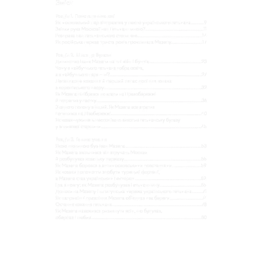 "Мазепа. Право на шаблю" Визначний козацький діяч, романтизований у європейській культурі: його образом надихалися Вольтер, Гюго, Ліст, Байрон. Ще за гетьманового життя російський цар розв’язав проти Мазепи інформаційну війну, і ось уже четверте століття Москва його проклинає, а українці — славлять. Хто він? Герой своєї батьківщини, зрадник, романтичний коханець? Ця книжка — спроба ще раз поглянути, що ми знаємо про Мазепу, його чималу роль в історії Європи, непрості рішення та яскраве життя.