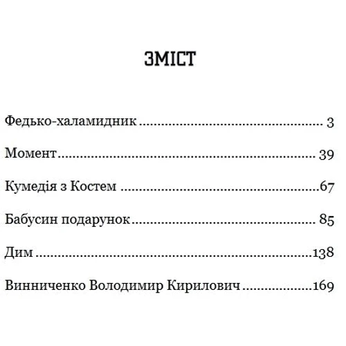До даної збірки увійшли оповідання українського письменника Володимира Винниченка: «Федько-халамидник», «Момент», «Дим» та інші.