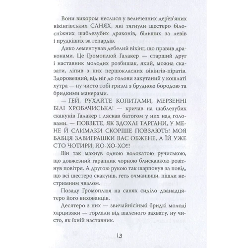 Такої лютої зими, як ця, на острові Лобур сто років не було! А Гиккус Страхітний Окунь III мусить морозяної ночі вирушити в експедицію. Йому зовсім не хочеться нікуди йти, та й батько заборонив, але в Гиккуса немає виходу: його друг помирає, і врятувати його може тільки… картоплина. Цей загадковий овоч привіз із Америки батько Норберта Дуболома, а Норберт навряд чи погодиться допомогти: у нього на Гиккуса зуб. Точніше, сокира. Та Гиккуса це не зупинить. Хоч він і не вродився силачем, як інші героївікінги, але придумає, як зняти прокляття дракона!