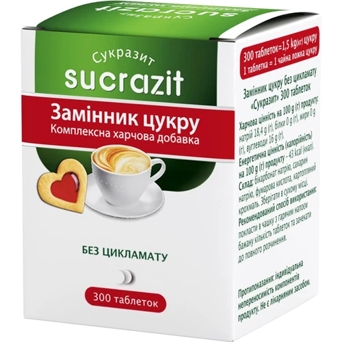 Склад: сахарин натрію, фумарова кислота, сода питна, без ГМО