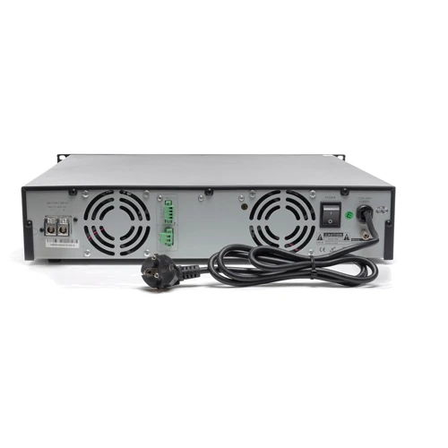 Усилитель VA-120 относится к важнейшим элементам системы и отвечает за аудиотрансляцию высокого качества без помех и искажений. Предназначен для преобразования аудиосигнала линейного уровня в усиленный сигнал, воспроизводимый в акустических системах (потолочные громкоговорители, звуковые колонки, прожекторы и др.).