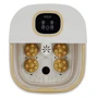 Управление устройством интуитивно понятно, ведь все функции включаются/выключаются на большой панели управления, включая установку таймера на желаемую продолжительность сеанса. Складная конструкция позволяет компактно хранить массажер, когда он не используется. Для удобства переноски предусмотрена профилированная ручка, а для слива воды - специальное дренажное отверстие.