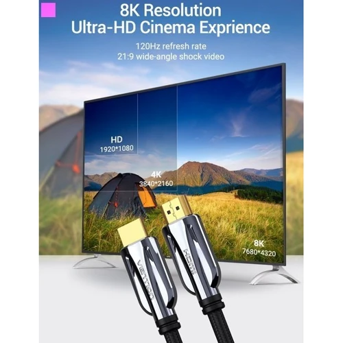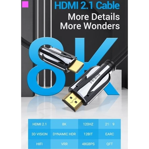 Кабель последнего поколения Vention HDMI 2.1 (AAL) имеет 3-х кратное увеличение пропускной способности до 48 Гбит/с (относительно кабелей стандарта HDMI 2.0 с пропускной способностью до 18 Гбит/с), разрешение 8K (7680х4320) Ultra HD, технологии переменной частоты обновления (VRR), динамического HDR и автоматической регулировки латентности.