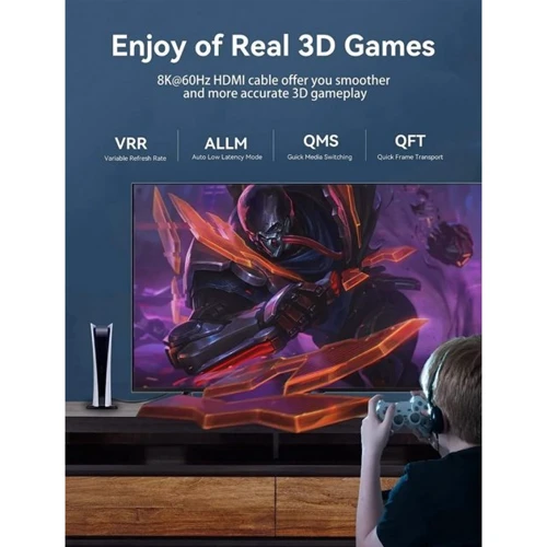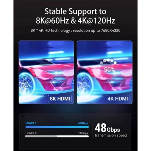 Кабель Vention HDMI 2.1 обеспечивает более высокое разрешение и более высокую частоту кадров. Версия HDMI 2.1 даст нам 4K на 120 Гц, 8K на 60 Гц и даже 10K для коммерческих инсталляций. Также высокая частота кадров очень важна для геймеров.