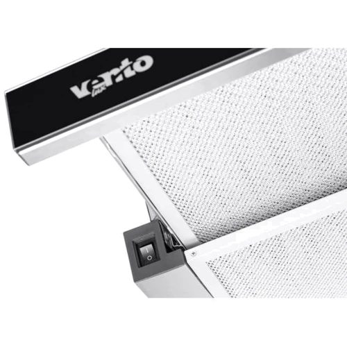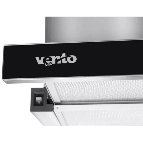 # Дизайн и эргономичность Корпус модели Ventolux GARDA 60 BG (1000) LED стальной, а передняя часть выдвижной панели изготовлена из чёрного стекла. За панелью, по краям, размещены кнопки управления, они скрыты и не привлекают внимания.