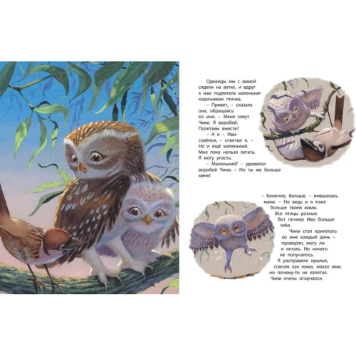 Совёнок Иви однажды выглянул из гнезда и увидел огромный и прекрасный мир. Ему не терпится познакомиться с ним поближе. Хорошо, что мама всегда рядом, - она всему научит и всегда поможет…