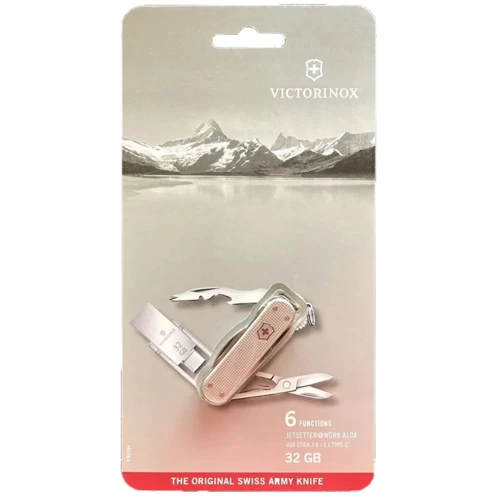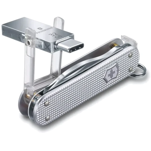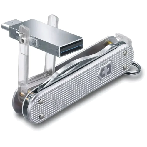 Victorinox JETSETTER@WORK ALOX (серебристый) – маленький складной брелок 58 мм на 6 функций, среди которых выделяется USB-флешка 3.0/3.1, обеспечивающая 32 ГБ памяти. Находитесь ли вы дома, в офисе или в дороге, этот карманный нож удовлетворит ваши потребности. Идеальный технический аксессуар для современного человека.