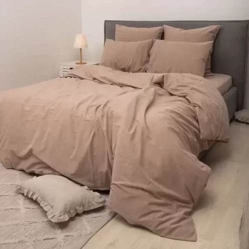 Вареный хлопок — это ткань из 100% высококачественного хлопка, которая прошла специальный процесс обработки горячей водой, благодаря которому стала мягкой, легкой и прочной. После обработки материал имеет особенную, слегка мятую структуру, которая дарит возможность отдохнуть от глажки, наслаждаясь эстетичностью и долговечностью постельного белья.