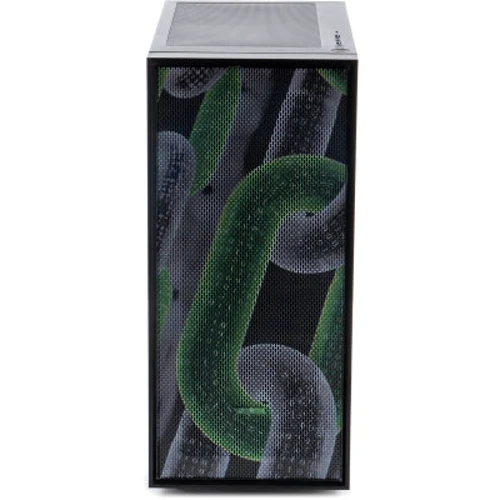 Геймерский корпус типоразмера Midi Tower имеет вертикальную установку, блок питания не предусмотрен в комплекте. Корпус имеет 6 внутренних отсека для расширения размерами от 2.5 дюймов до 3.5 дюймов. Также имеется 7 слотов расширения. Охлаждение производится с помощью 8 вентиляторов (в комплект не входят), каждый – диаметром 12 см. Для удобства на корпусе имеется четыре разъёма, два USB 3.0, один USB Type-C, вход для наушников и микрофона.