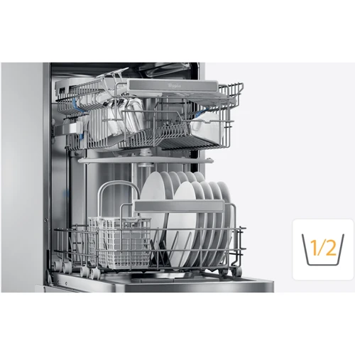 # Половинная загрузка Для мытья посуды без лишнего ожидания! Не ждите, пока посудомоечная машина заполнится. Благодаря программе половинной загрузки Вы можете помыть даже несколько тарелок, свободно размещенных в корзине, экономя время и электроэнергию.