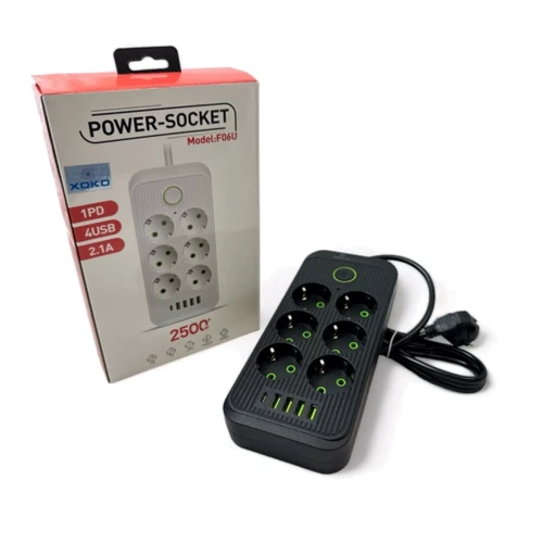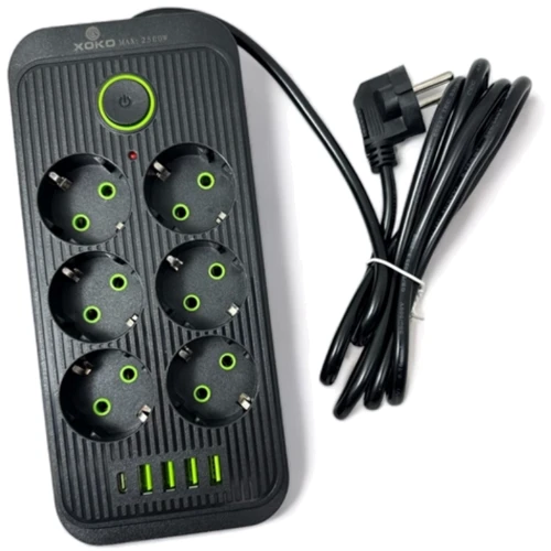 Сетевой фильтр XoKo SP-6-4-1, 2 м, 6 розетки, 5 USB– позволит подключать к питанию несколько устройств, имея только одну розетку.