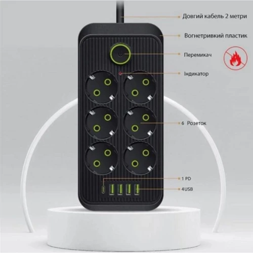 Имея 6 розеток 4 USB и 1 Type-C, пользователь сможет одновременно заряжать смартфон, планшет, смарт-часы, беспроводные наушники и прочее.